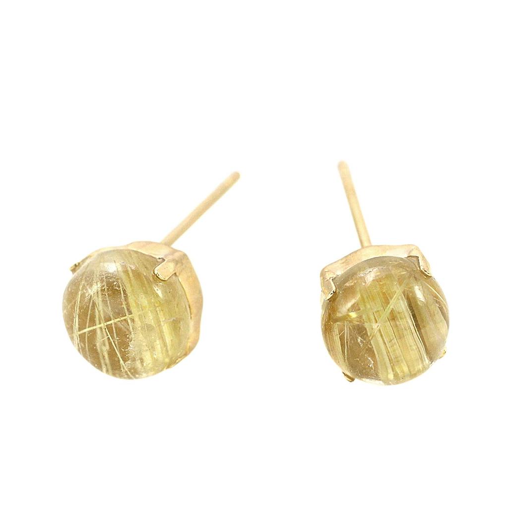 Boucles d'oreilles en quartz rutile, or jaune 18 carats, boule ronde unique pour les deux oreilles [Barzaz], pour femme