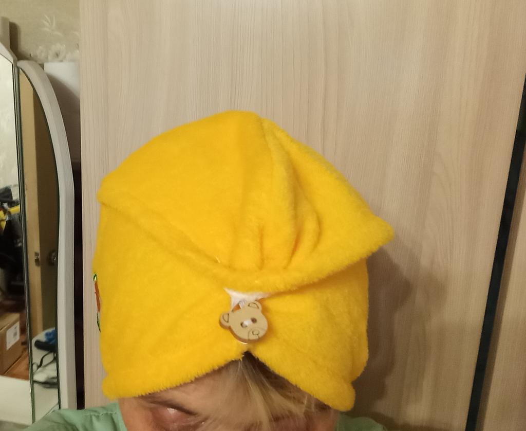 Serviette-bonnet normale. Pratique après le bain.