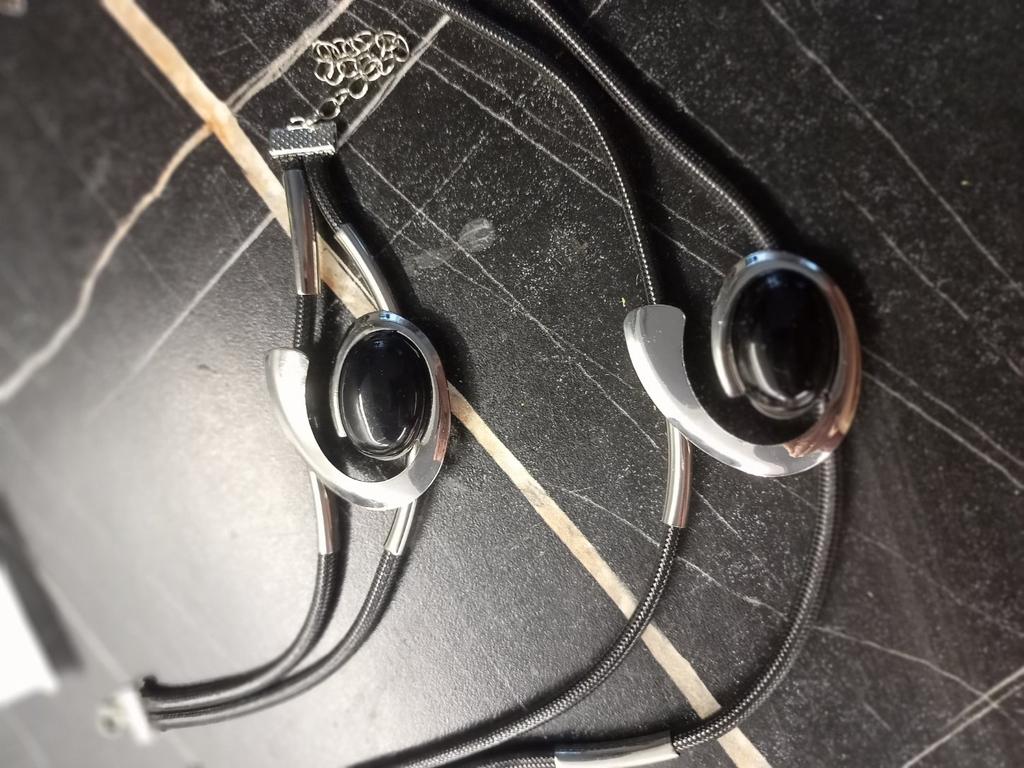 Le collier est très court, juste en dessous du cou. Je vais le construire en chaîne. Et l’élément décoratif du bracelet est « mobile », il se déplace d’avant en arrière. J'ai dû m'asseoir sur de la colle, c'est devenu beaucoup mieux. Oui, ! et il est impossible de resserrer le bracelet sans aide extérieure ! Et l'ensemble en lui-même est bon et élégant !