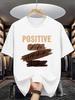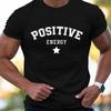 Positive Letter Pattern Print Men's Medium Stretch T-shirt, Graphic Tee Men's Summer Clothes, Men's Outfits