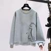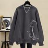 Sweat-shirt ample à manches longues et col rond pour femme, imprimé décontracté, style vintage, couleur unie, collection automne-hiver