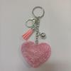 Porte-clés créatif en velours pêche avec pendentif en forme de cœur et pompon en diamant