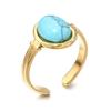 Bague ouverte ovale en pierre semi-précieuse – Bague tendance en acier titane résistant à la lumière pour femme