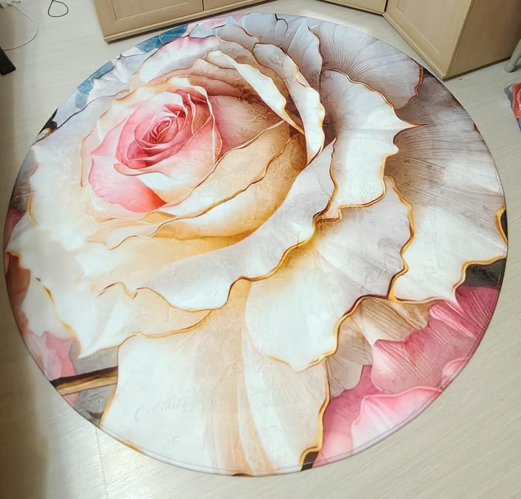 Tapis de sol rond luxueux à motif de roses dorées pour cuisine, couloir, chambre à coucher, salon, doux, antidérapant