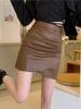 Mini-jupe trapèze taille haute en cuir noir pour femme - Automne/Hiver, coupe slim, anti-exposition, petite, style coréen