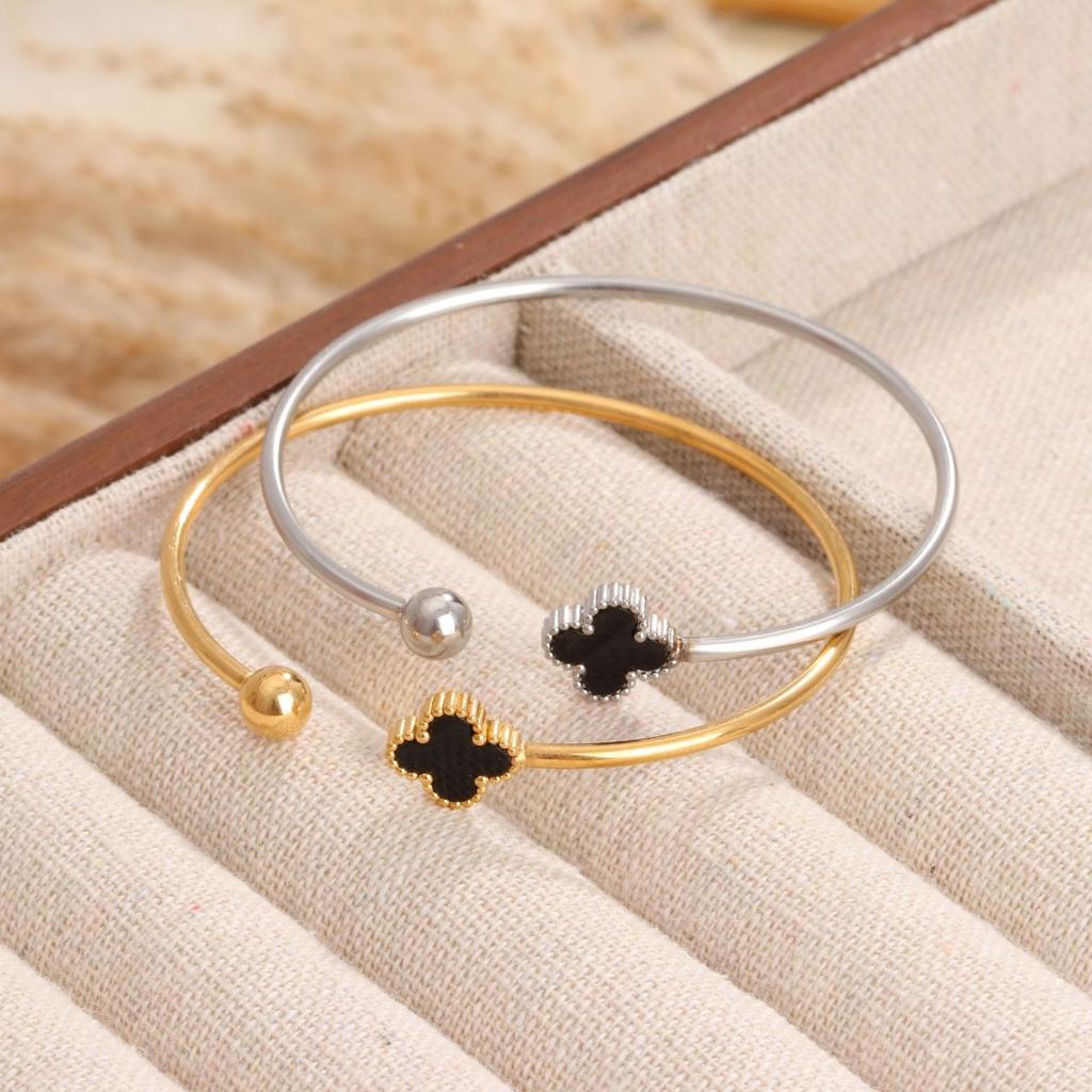 Bracelet trèfle à quatre feuilles en acier titane pour femme, bijou simple et ajustable