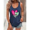 Amour Débardeur Imprimé, Haut Décontracté à Col Ras du Cou Sans Manches Pour le Printemps & l'Été, Vêtements pour Femmes