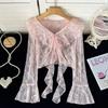 Gilet en dentelle frais à manches évasées pour femme, été, bord à volants, fin, manches longues, protection solaire