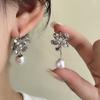 Pearl Colorful Rose Earrings French Gentle Wind Elegant White Flower Earrings Long Camellia Stud Earrings Women
