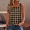 T-shirt imprimé sans manches à col carré plissé décontracté d'été pour femmes
