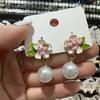 Boucles d'oreilles en argent, aiguille, diamant, perle, feuille, fleur, petites boucles d'oreilles à tige pastorales fraîches, nouveau tempérament, boucles d'oreilles polyvalentes pour femmes