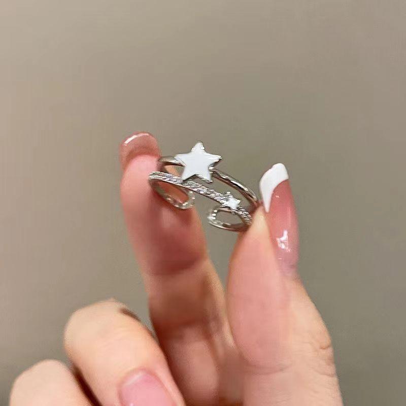 Bague étoile double couche, sens du design de niche ins pour femmes, bague étudiante petite amie à ouverture réglable, bague d'index de luxe léger