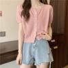 Knitted Women's Summer French Cool Style High-end Retro Round Neck Versatile Short Sleeved Cardigan Top