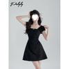 Robe A-line noire à taille fine et col carré - Été 2025 Style français Hepburn