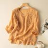 Hauts rétro brodés en coton et lin pour femme - Été 2024, coupe ample, style ethnique polyvalent