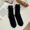 Chaussettes mi-mollet à nœud papillon doux JK japonais pour femmes, chaussettes à nœud au talon, chaussettes décontractées noires et blanches en bouclette, chaussettes de sport en coton pour filles