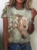 T-shirt d'été vintage pour femme avec imprimé cheval en 3D, t-shirt tendance pour femme, col ras du cou, manches courtes, hauts pour enfants, t-shirts animaux