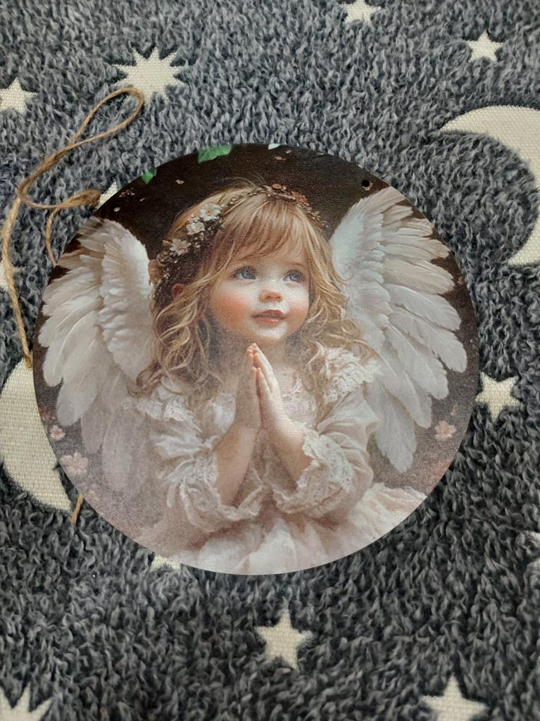 Art Mural Rond en Bois 2D sur Thème d'Ange 1 pièce, Idéal pour Décoration de Porte, Mur, Maison, Pièce, Ferme, Rue, Magasin, Garage, Bar, Jardin et Café
