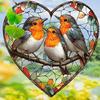 1Pc Large Heart Shape Robin Bird Suncatcher 8x8" Stained Glass Effect Hanging Window