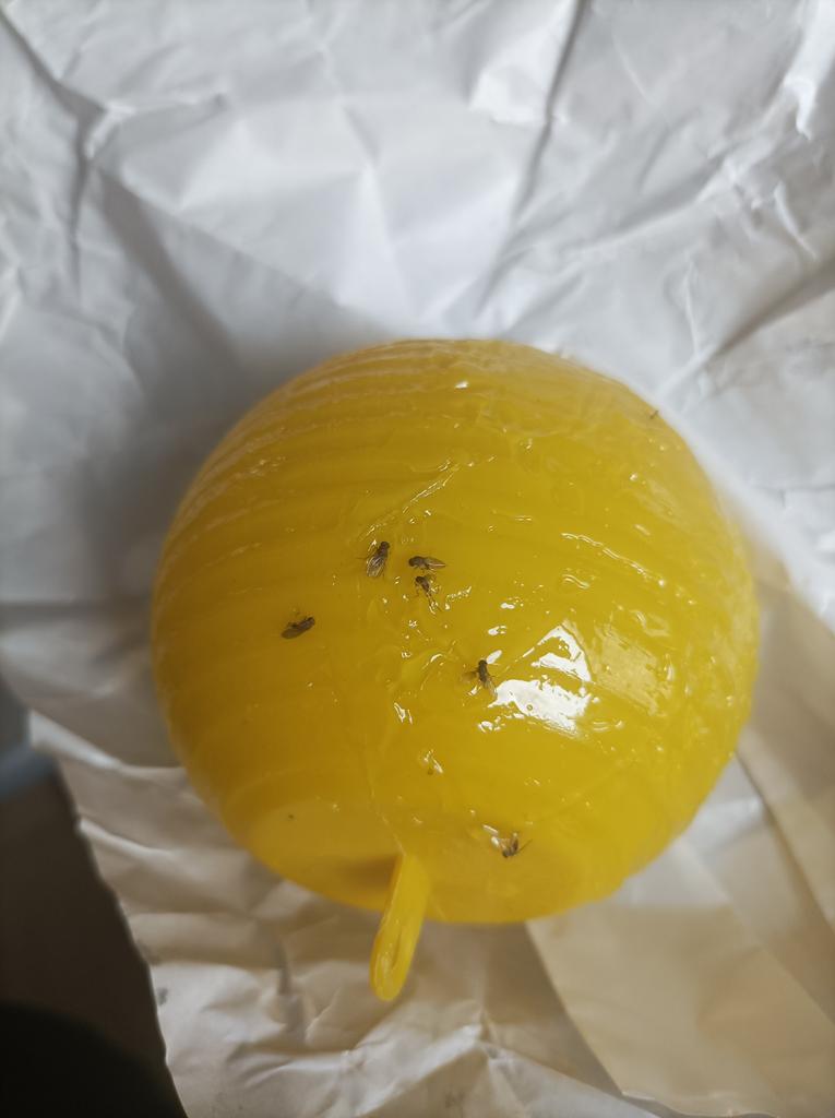 Une toute petite boule. Mais il y a suffisamment de substance collante. Les mouches ne se sont pas encore posées, mais je pense que si elles se posent, elles ne s'envoleront plus.