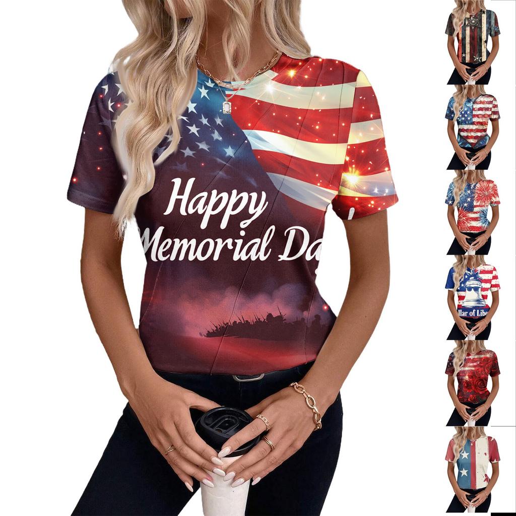 Haut d'été à manches courtes avec imprimé Jour de l'Indépendance pour femme