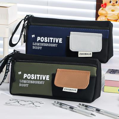 Trousse à crayons en toile Double couche Boîte à stylos Organisateur de papeterie multifonction Étudiant
