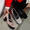 Chaussures simples mignonnes, bouche légère et une bride, chaussures Mary Jane, nouveautés de l'automne 2024, nœud tempérament argenté français à bout rond.