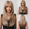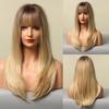 Perruques synthétiques longues et raides Henry Margu, cheveux noirs foncés ombrés avec frange pour femmes noires, perruques de cosplay quotidiennes résistantes à la chaleur