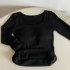 T-shirt chaud en laine épaissie à col carré, manches longues, pour femmes, nouveau automne et hiver, amincissant, à porter sous un autre vêtement, haut de base