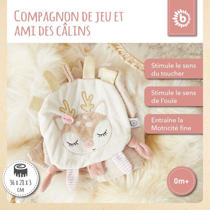 Bieco doudou cerf - doudou pour bébé avec effet froissé - jouet de préhension pour bébé doudou avec jouet à saisir doudou bebe