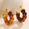 Boucles d'oreilles Maillard Style Rétro Ambre Boucles d'oreilles en C Boucles d'oreilles à clous pour femmes Tempérament Boucles d'oreilles quatre saisons