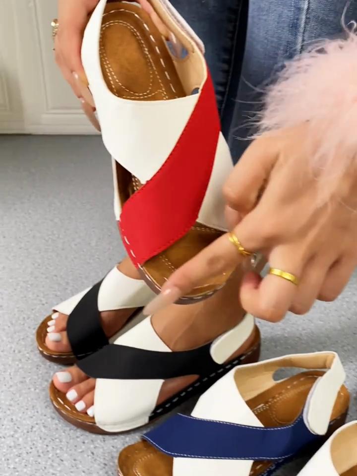 Sandales compensées contrastées pour femmes, chaussures d'été à bout ouvert et brides croisées, sandales d'extérieur confortables et respirantes