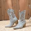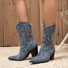 Bottes de cowboy western à bout pointu et à la mode pour femmes, style rétro, polyvalentes, brodées, à enfiler, mi-mollet