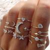 Ensemble de 9 bagues européennes et américaines pour femmes, motif amour, papillon, étoile, lune et diamant