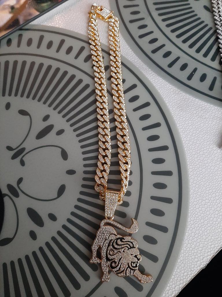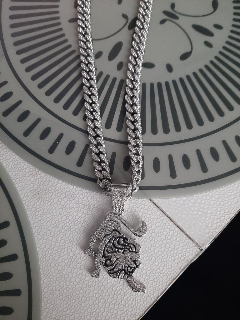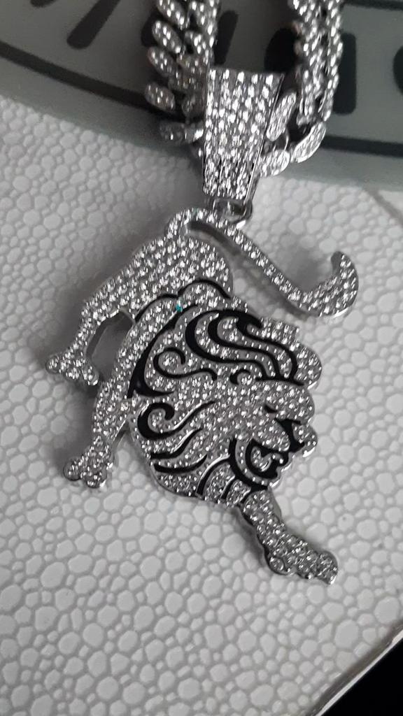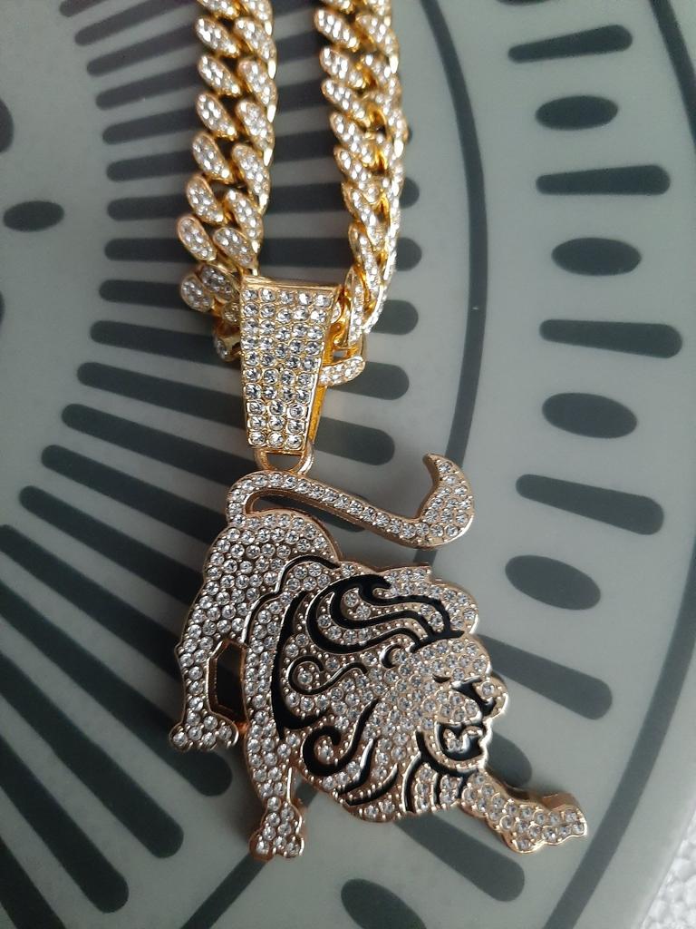 Animal Lion Chaîne Barbe de Dragon Diamant Complet, Collier Pendentif Personnalité Style Hip Hop pour Homme