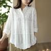 DIMANAF 2025 Nouvelle Chemise Printemps Femme Blouse en Dentelle Manches Longues Hauts Mode Basiques T-shirts Décontractés Amples T-shirts Blancs