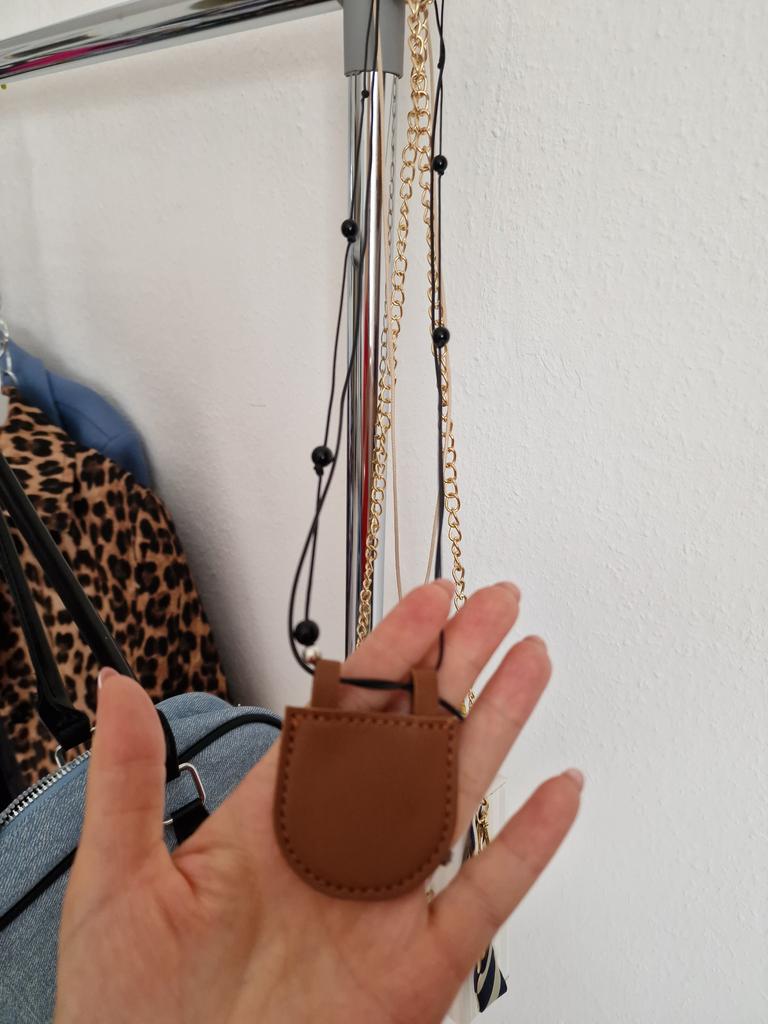 Collier pendentif style rétro avec matériaux en cuir pour écouteurs et pièces de monnaie, portable et robuste