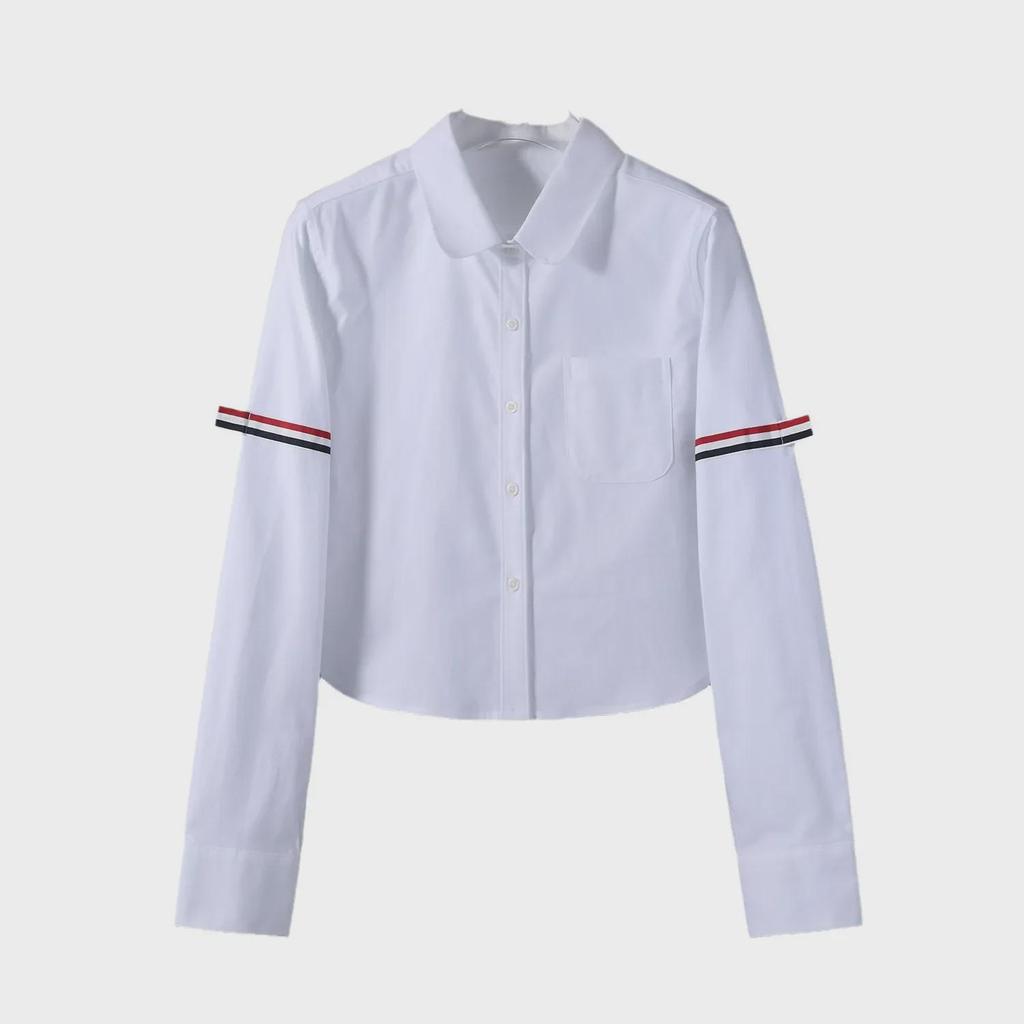 TB JL Haut Court en Tissu Oxford pour Femme - Style Collège, Ventre Découvert, Manches Longues, Chemise Taille Haute