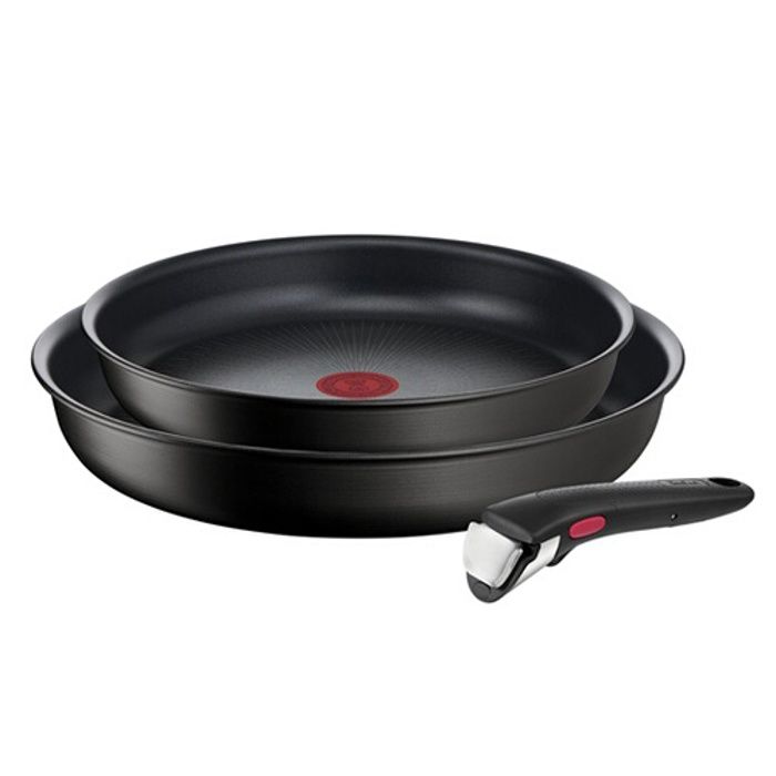 Tefal ingenio eco resist lot 2 poêles 24/28 cm + poignée amovible, empilable, induction, facile à nettoyer, revêtement antiadhésif