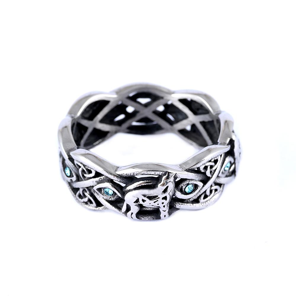 Bague loup géante de la mythologie nordique viking pour hommes et femmes, style punk, yeux bleus, pierre, animal, rétro, mode, bijoux, cadeau, livraison directe
