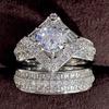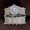 Huitan Alliances de mariage tendance pour femmes Nouveau design de mode 2 pièces Anneaux en zircone cubique AAA Alliances de fiançailles Ensembles de fête Bijoux