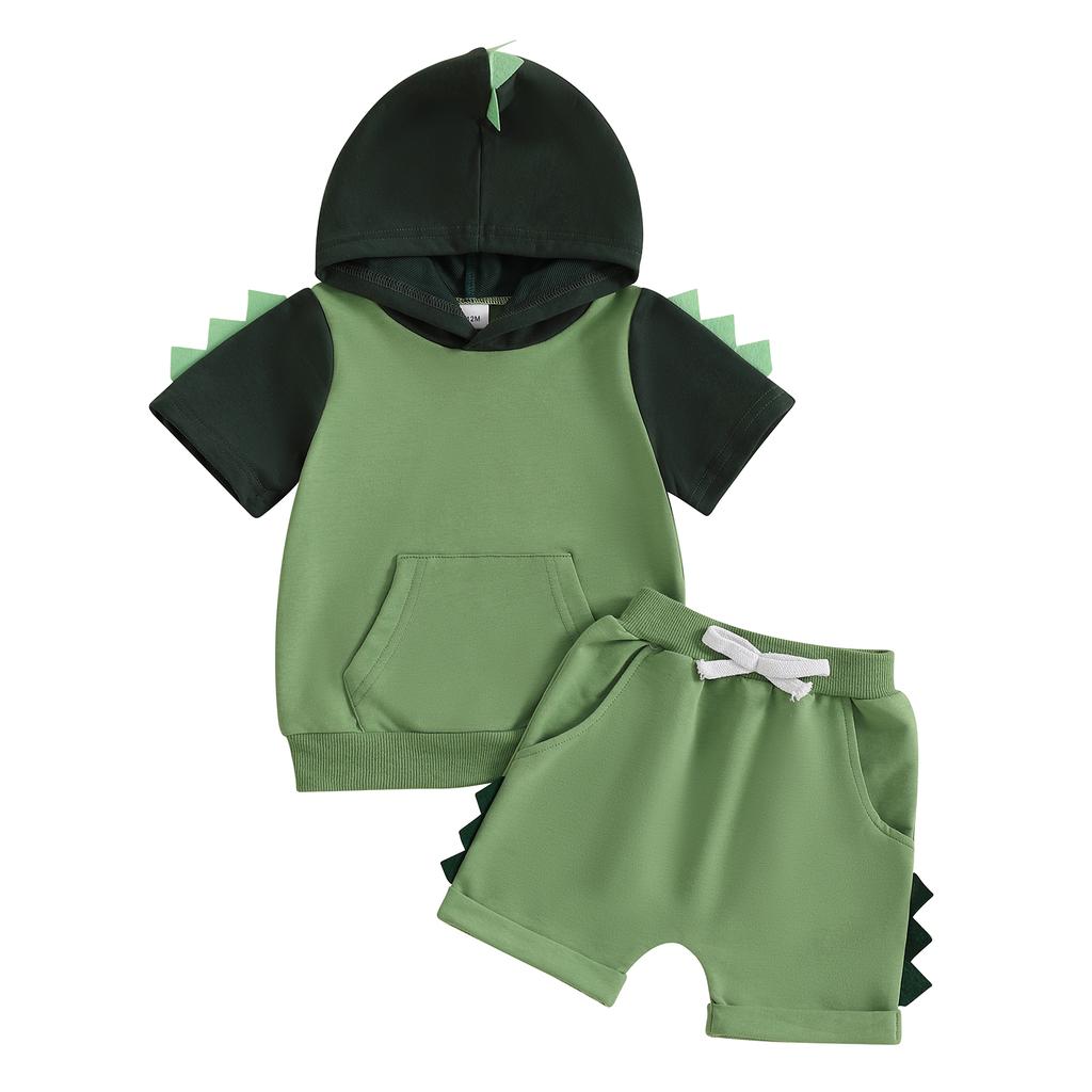Vêtements d'été pour petit garçon T-shirt à capuche à manches courtes Dinosaure Short à poches à taille élastique Tenue