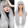 Perruques synthétiques Orange longues perruques droites avec frange pour les femmes rose rouge Cosplay fête usage quotidien cheveux naturels