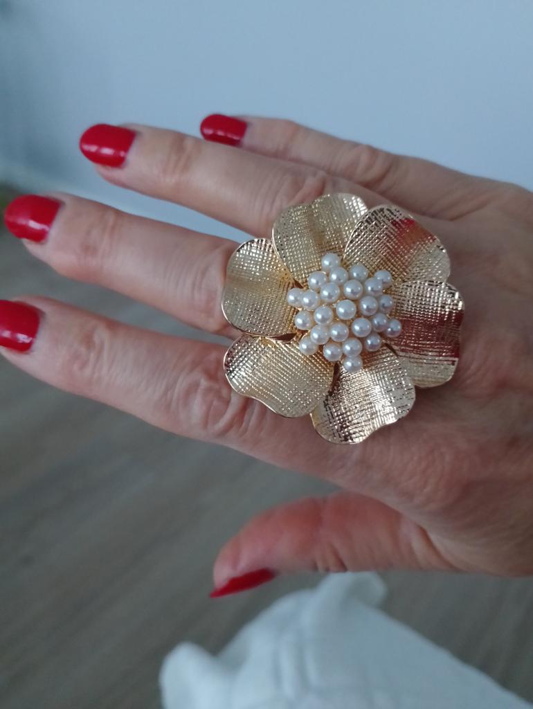 Bagues de luxe en perles et grandes fleurs pour femmes, bijoux vintage pour mariage