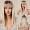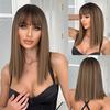 Perruques synthétiques droites marron foncé de longueur moyenne avec frange pour femmes, perruque lisse d'aspect naturel en Fiber résistante à la chaleur