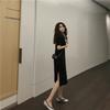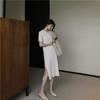 Nouveau Style Printemps et Automne avec Manteau Tempérament Col Polo Ample Slim Droit Mi-longueur Soie Tricoté Fente Robe