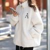 Col Montant Lettres Ample Mince et Épaissi Veste Chaude pour Automne et Hiver Nouveau Zippé Simple Veste en Coton