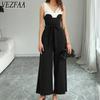 VEZFAA Mode Femme Décontracté Été Printemps Couleur Unie Imprimé Sans Manches Col Oblique Taille Haute Pantalon Combinaisons & Barboteuses