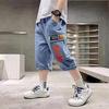 Short en jean pour adolescents de 4 à 10 ans, pantalon d'été doux imprimé lettres, pantalon décontracté pour enfants