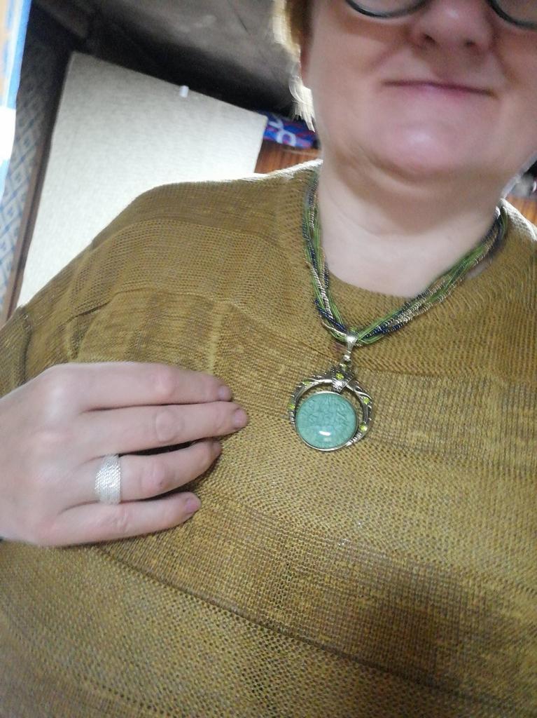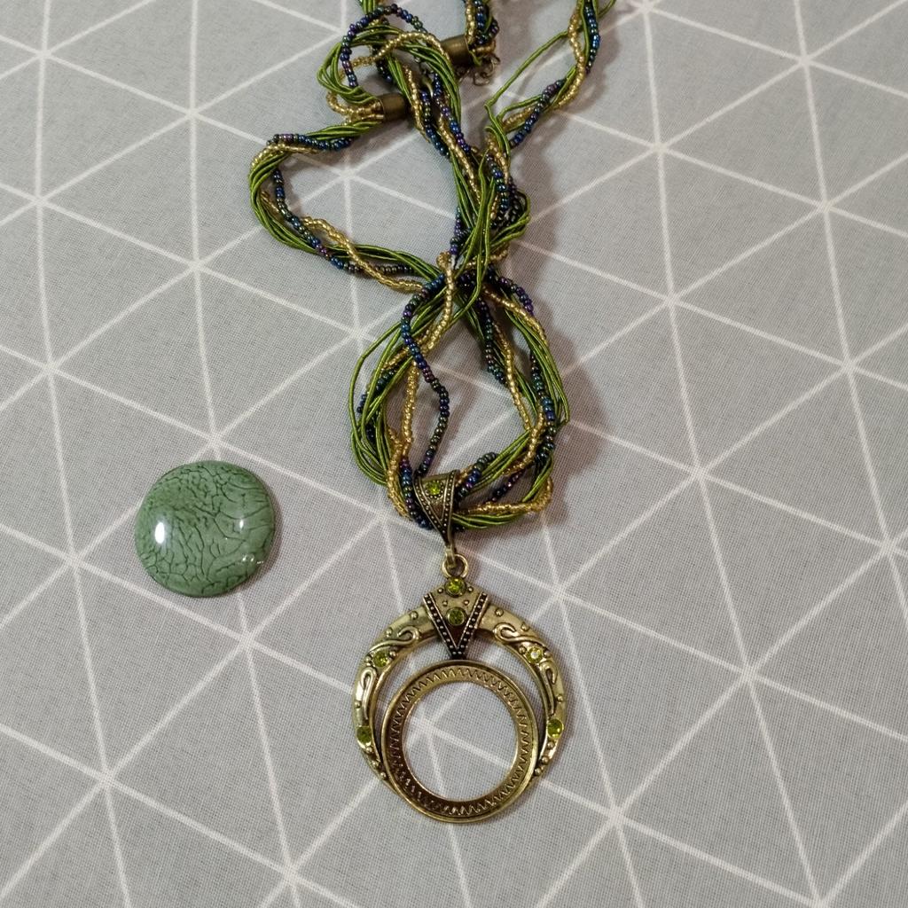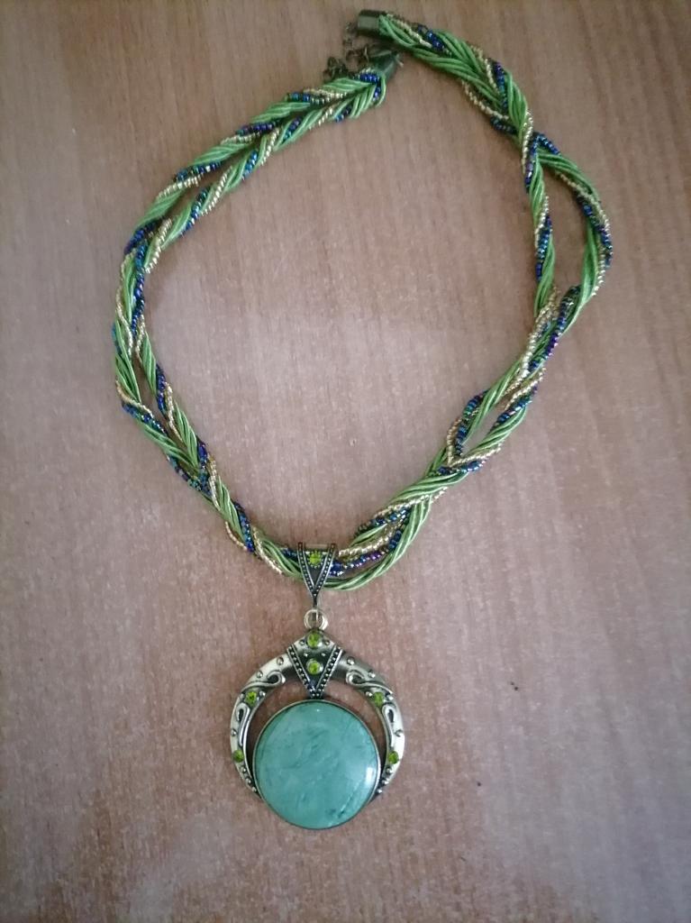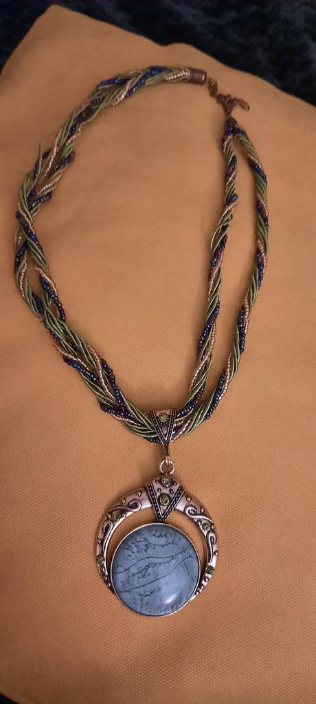 Le collier est joli, seulement il est écrit que l'insert est une pierre naturelle et je n'ai pas lu plus à ce sujet, mais en réalité c'est du plastique et cela ne m'a pas plu, d'autant plus que le collier est fait à la main.